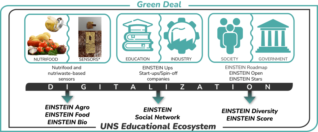 Kroz prezentaciju je naglašeno kako EINSTEIN projekat integriše četiri ključne oblasti – poljoprivredu, medicinu, edukaciju i tehnologiju – s ciljem stvaranja potpunog ciklusa razvoja i primene jestivih senzora. Ovi senzori se razvijaju korišćenjem pažljivo odabranih namirnica, a njihova primena obuhvata medicinsko praćenje, dijagnostiku, tretman i evaluaciju rezultata i pozitivnih efekata.