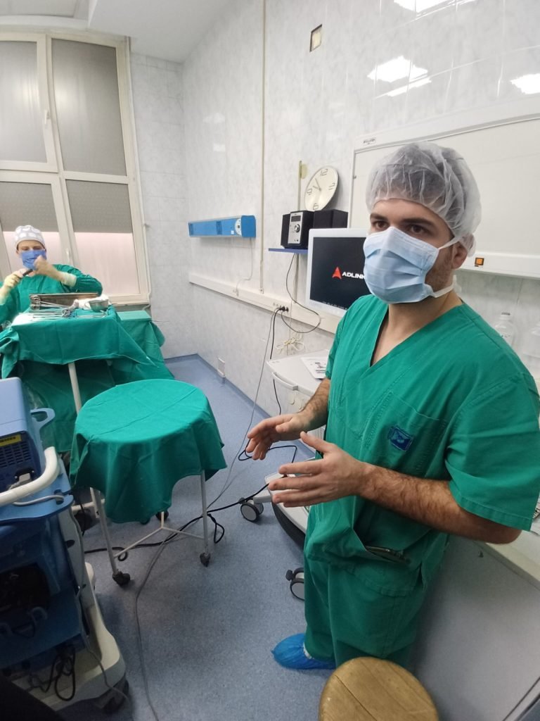 Théo Serranelli, Menadžer kliničke primene aparata iz divizije Fluorescence Imaging Getinge Group, zadužen za podučavanje i podršku lekarima u operacionoj sali, održao je obuku u vidu prezentovanja kliničkih i tehnoloških aspekata uspešnog tretmana raznih indikovanih stanja pacijenata uz korišćenje Fluobeam-a.